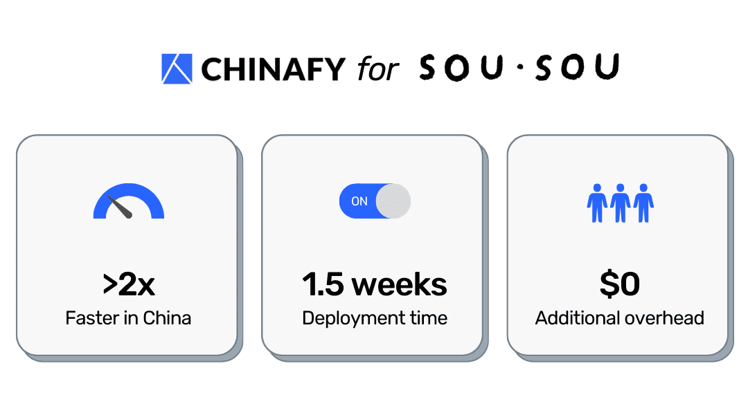 Chinafy generated a China-friendly version of the site that works alongside SOU・SOU’s existing stack, not against it.